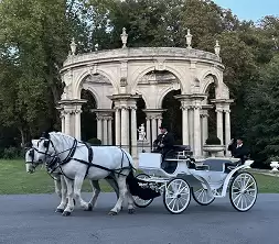 Entourée de verdure, cette élégante structure de pierre aux colonnes sculptées et aux arcs majestueux évoque l’architecture des jardins à la française du XVIIIe siècle. En son centre, une statue de marbre trône fièrement, accentuant l’atmosphère poétique de ce lieu d’exception.